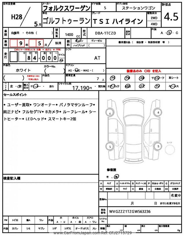 Volkswagen Golf Touran 2016 for sale in Tanzania - Tzs. 48,329,716 (Duty not paid)