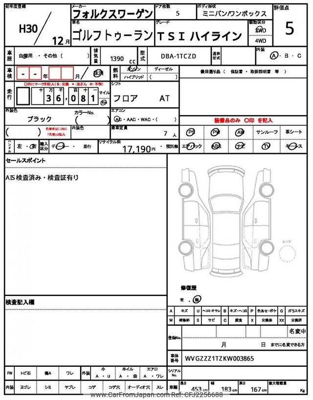 Volkswagen Golf Touran 2018 for sale in Tanzania - Tzs. 64,276,960 (Duty not paid)